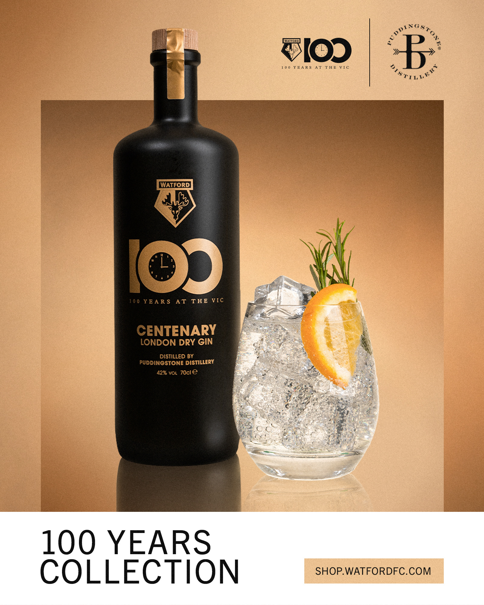 The Hornets Shop commemorated 100 Years at Vicarage Road by releasing a limited edition collection of clothing and Gin. All product imagery was done in house.