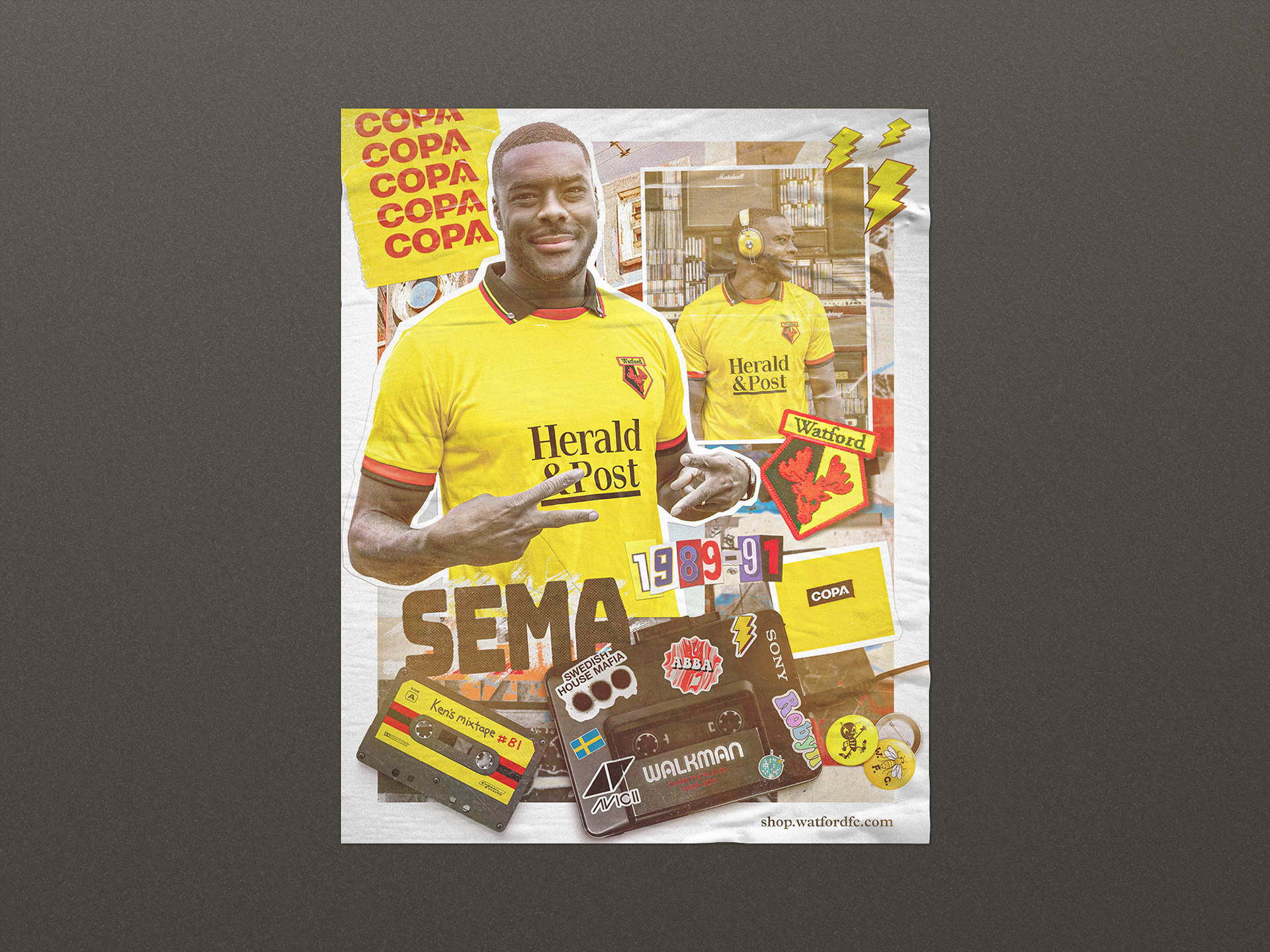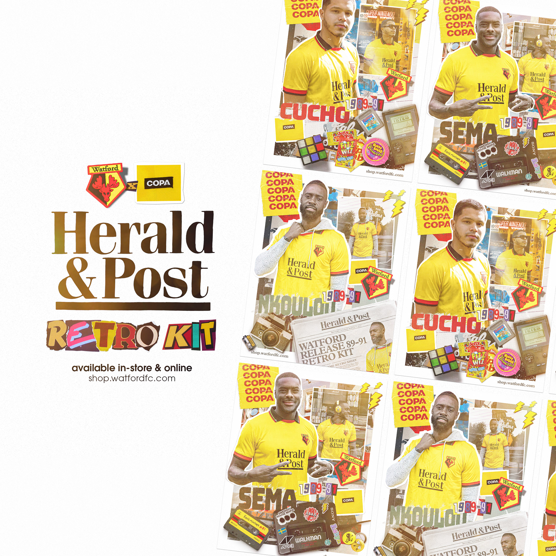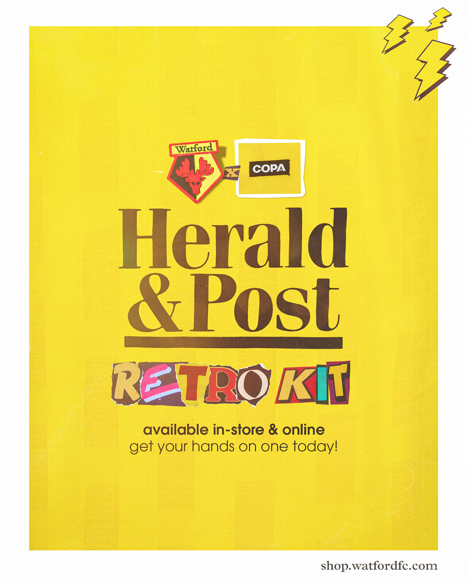 Retail campaign for the new Copa x Watford FC 1989-91 Herald & Post retro kit which included a mixture of digital & printed pieces.