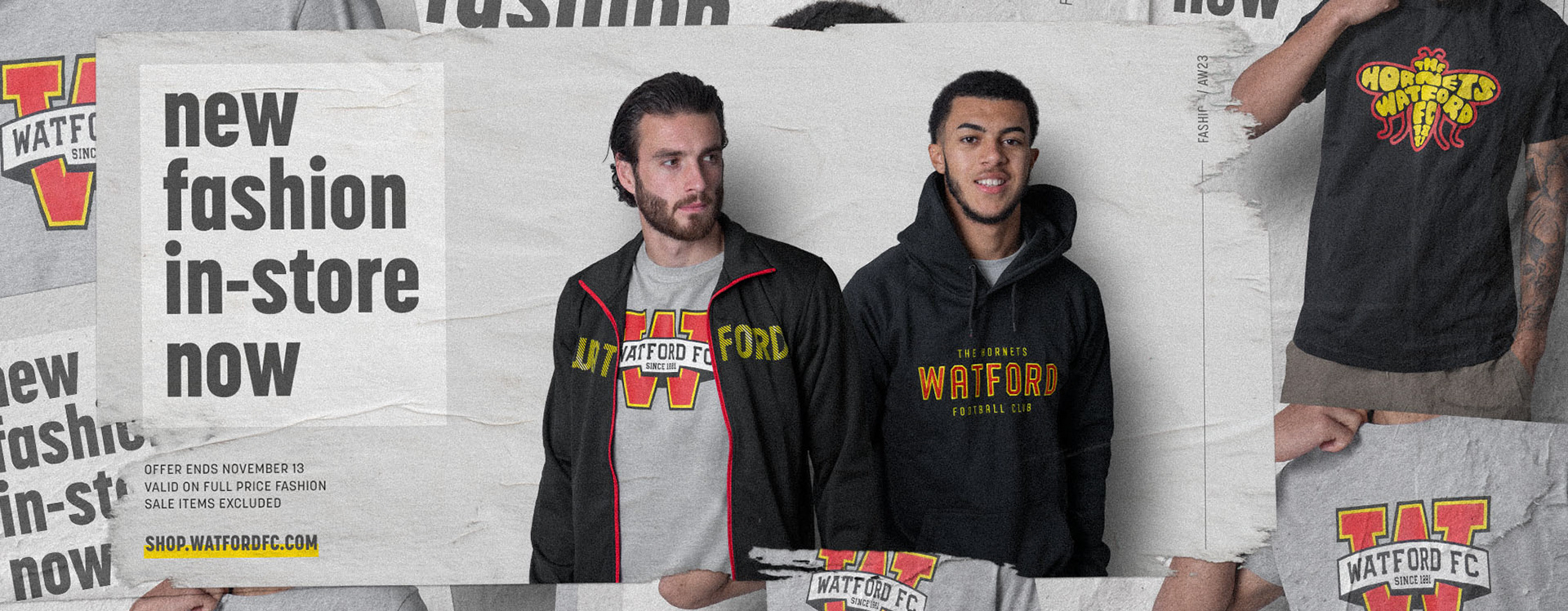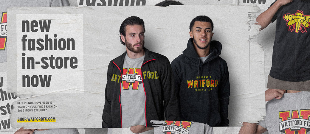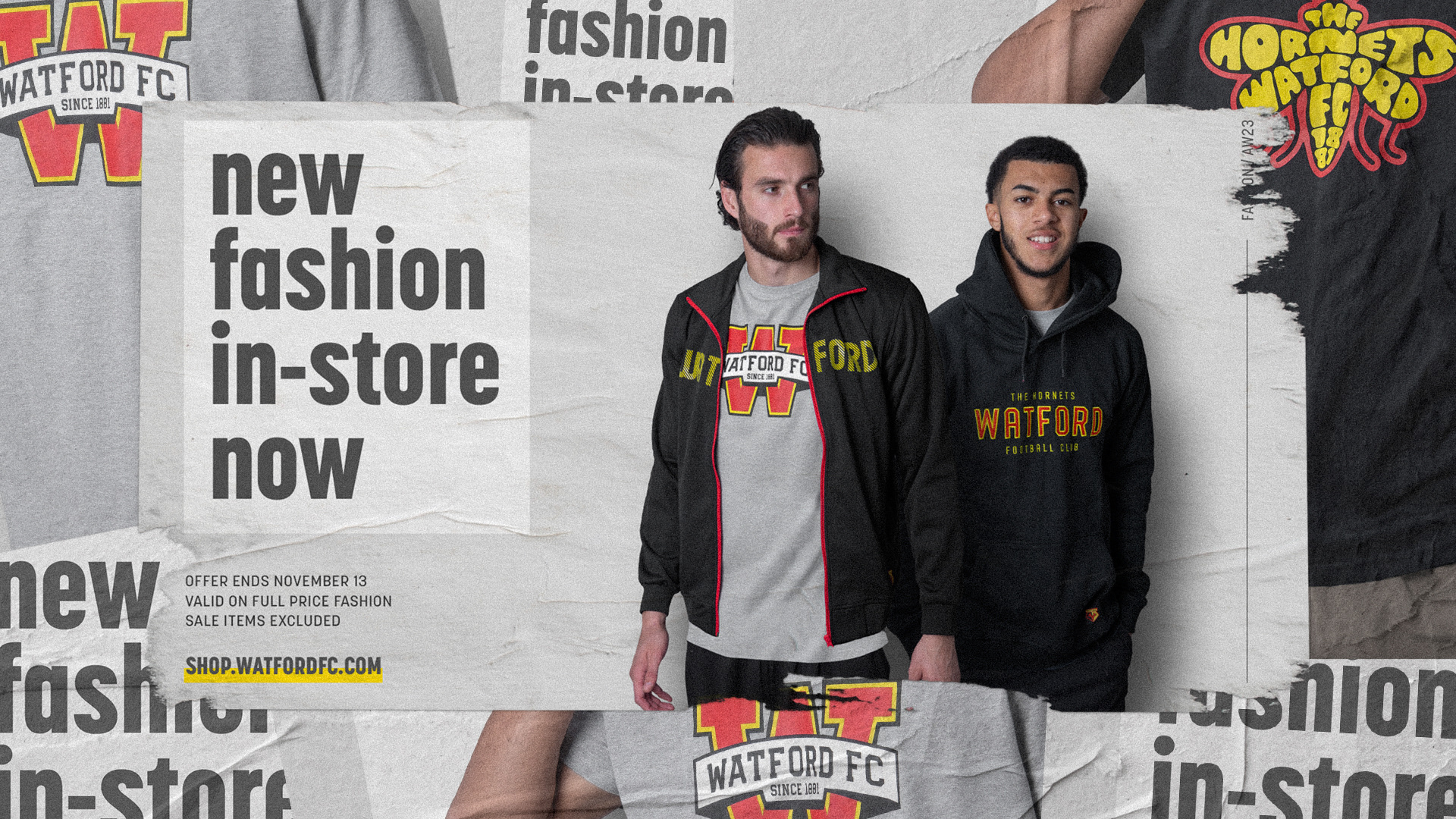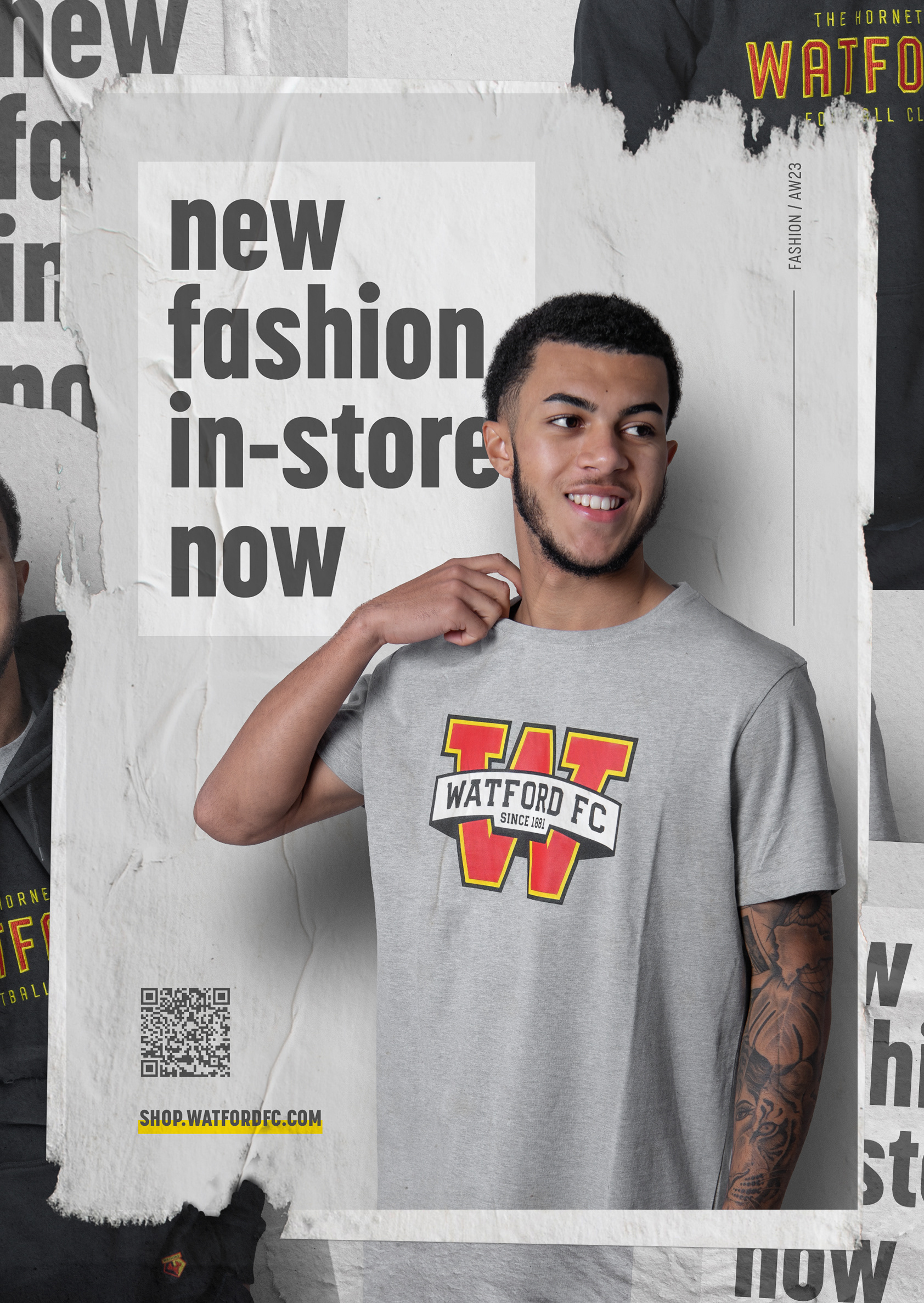 Ad set promoting The Hornets Shop Autumn-Winter 2023 fashion range.