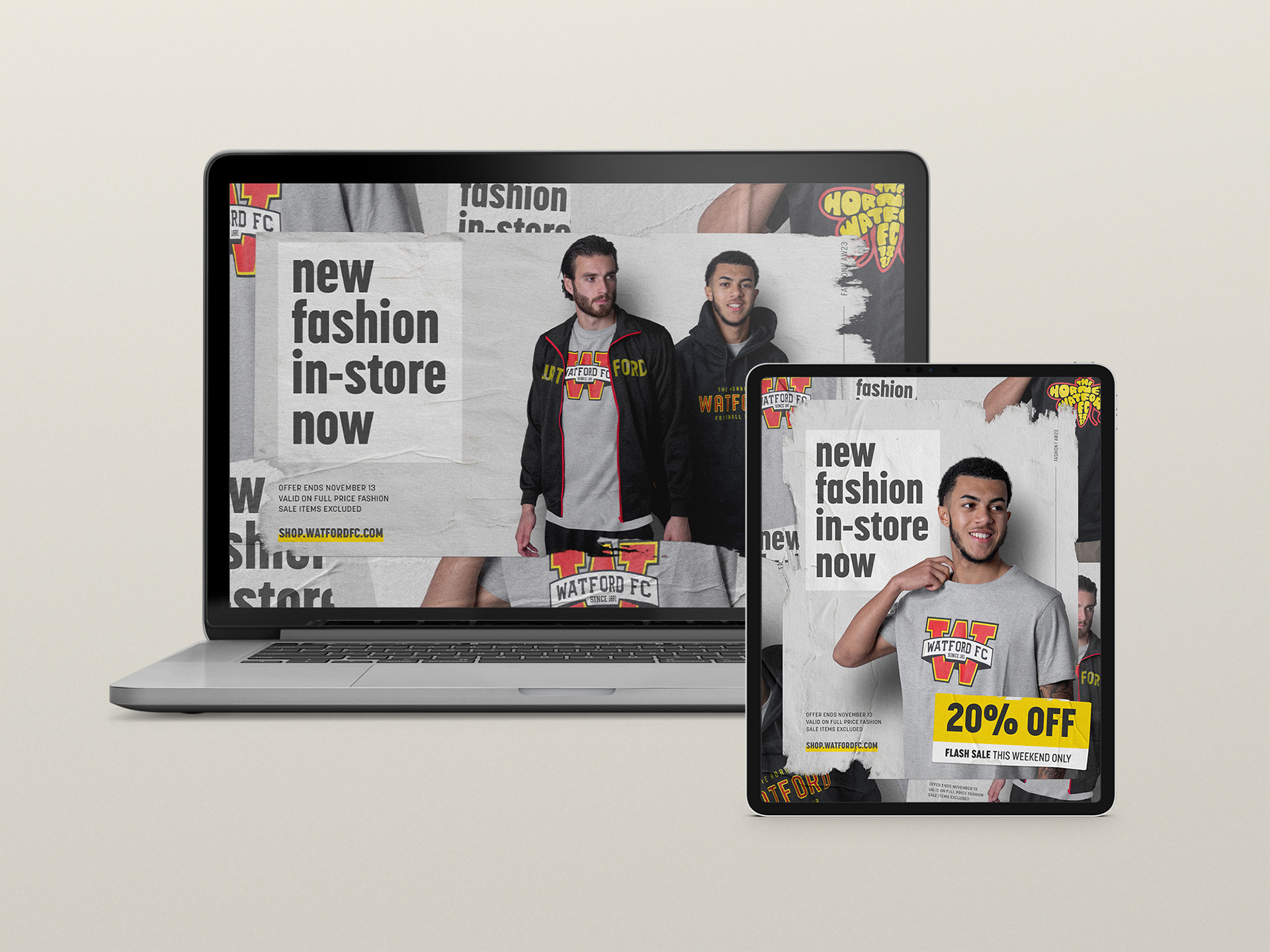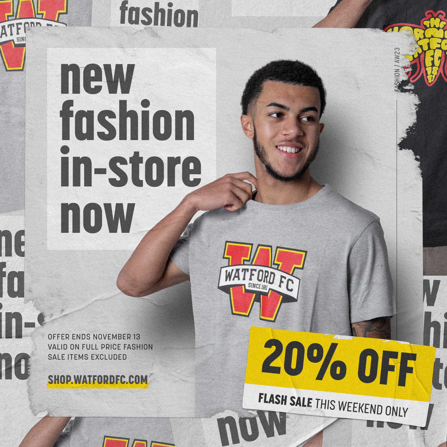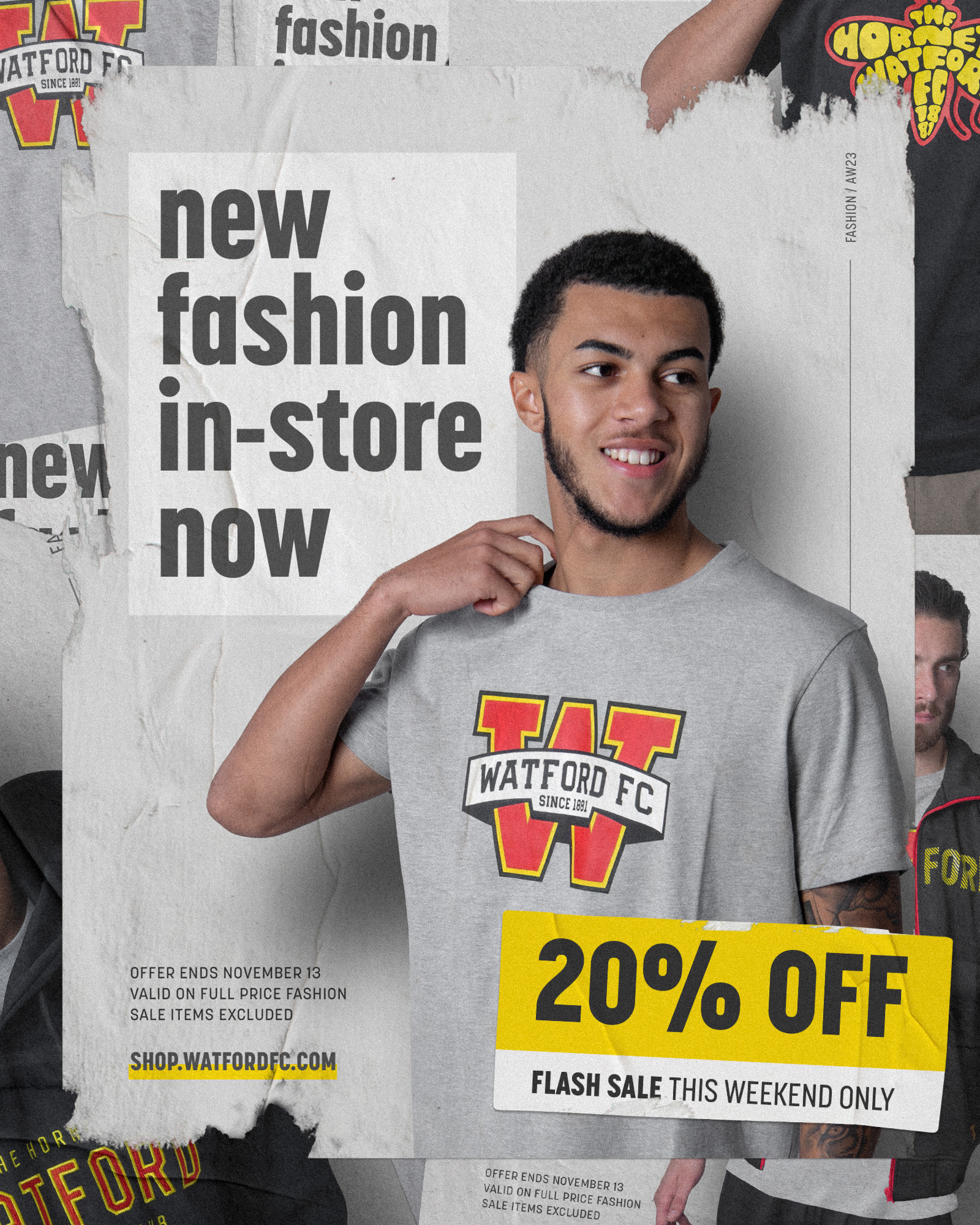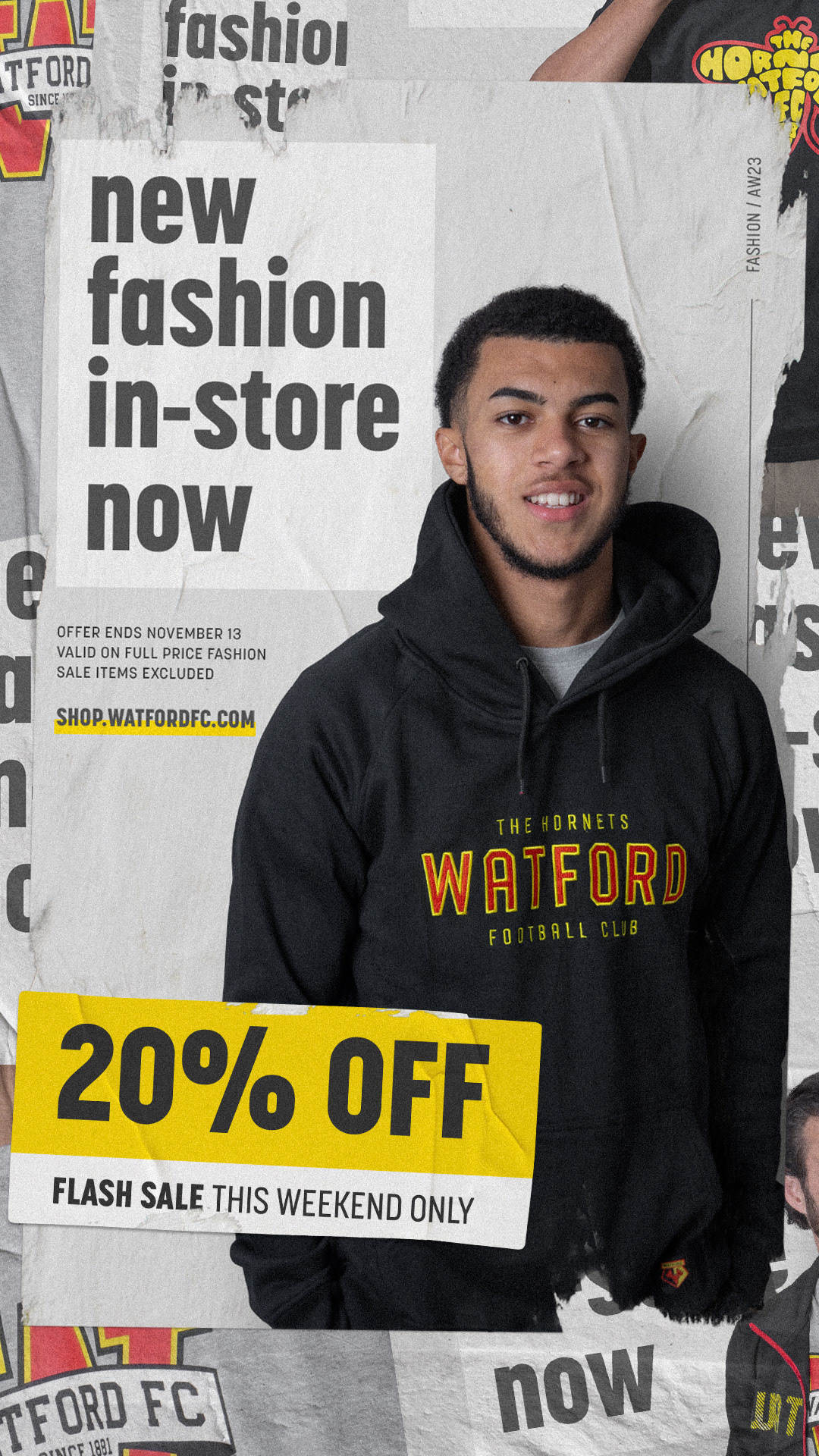 Ad set promoting The Hornets Shop Autumn-Winter 2023 fashion range.