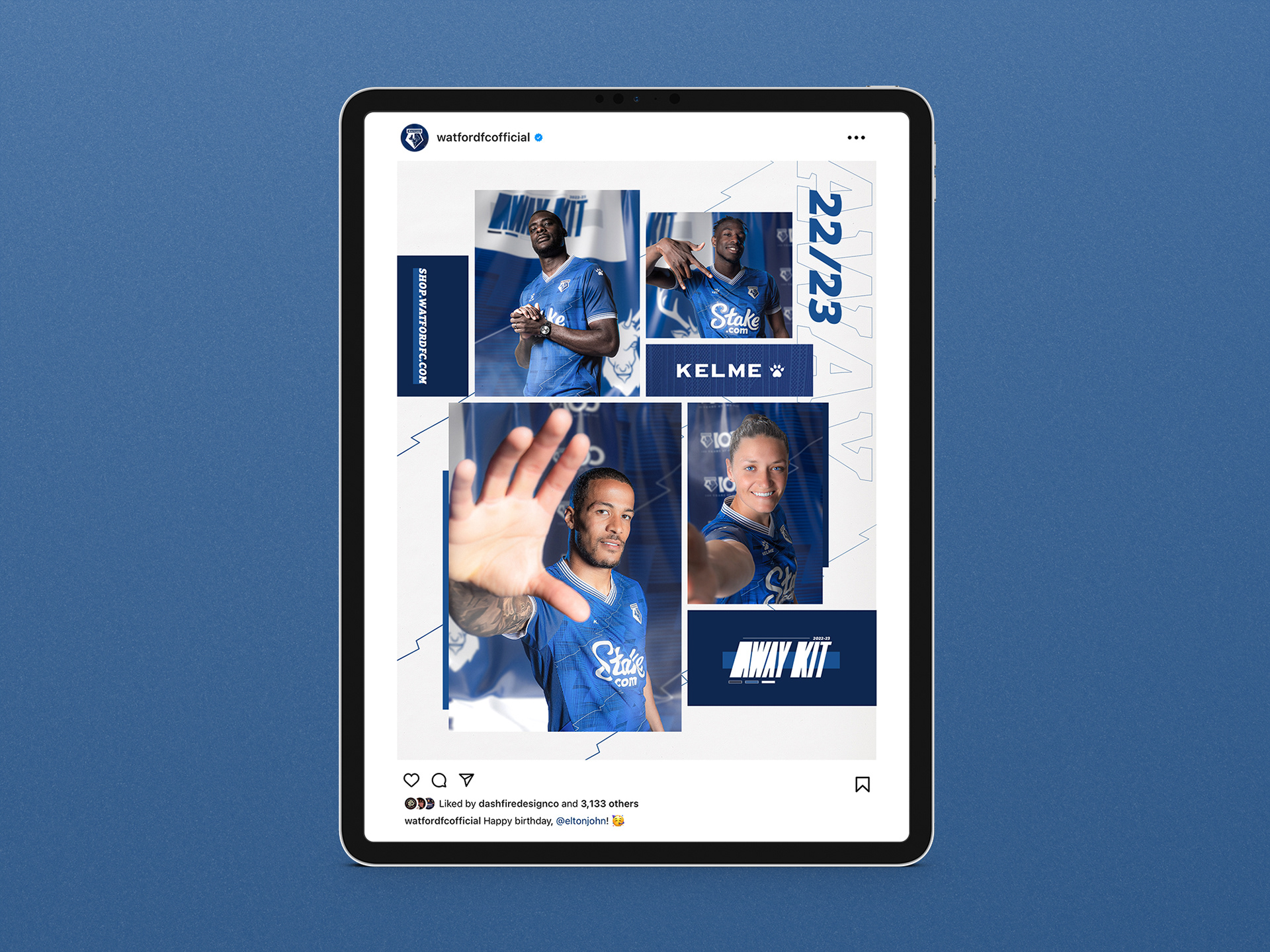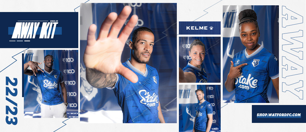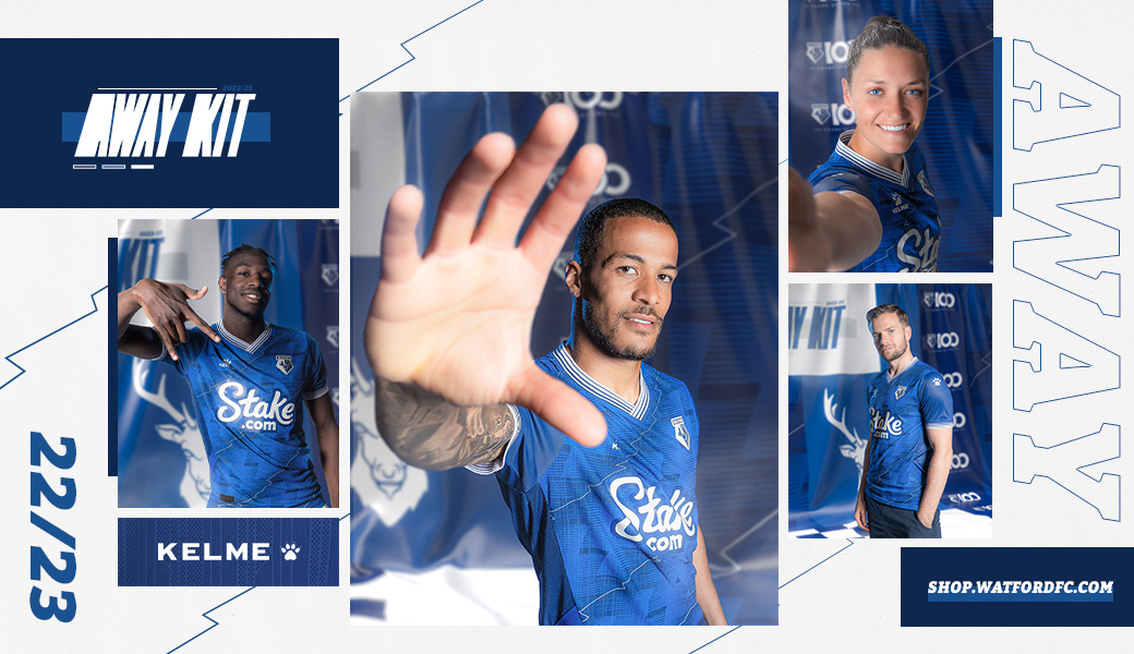 Retail campaign launching Watford's new away kit for the 2022-23 season. The project involved removing the background of images I took in the studio, and replacing them with a custom 3D backdrop created in Adobe Dimension.