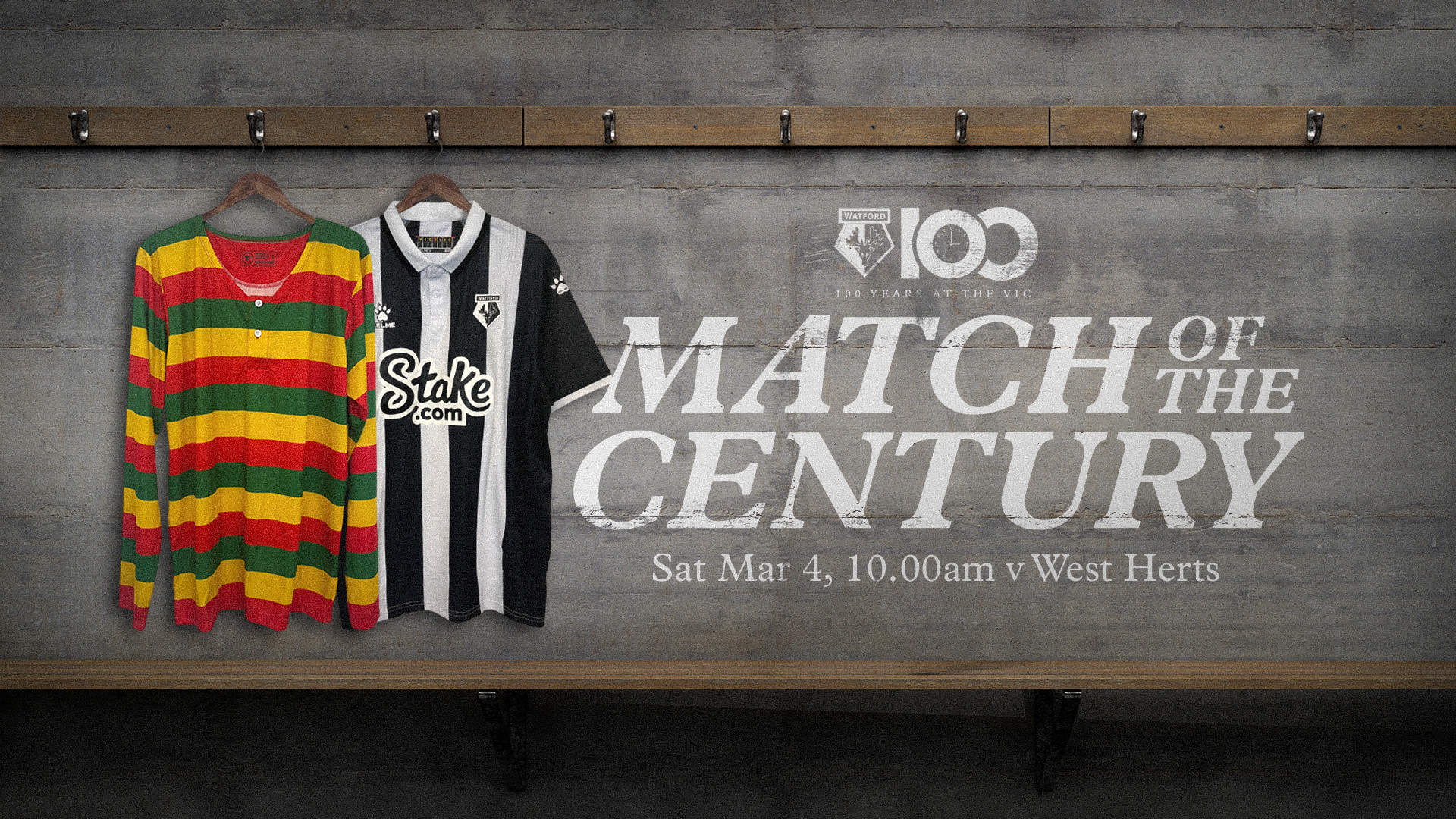 Email header to promote the Match of the Century, an exhibition match featuring ex players and fans to commemorate 100 Years at Vicarage Road.