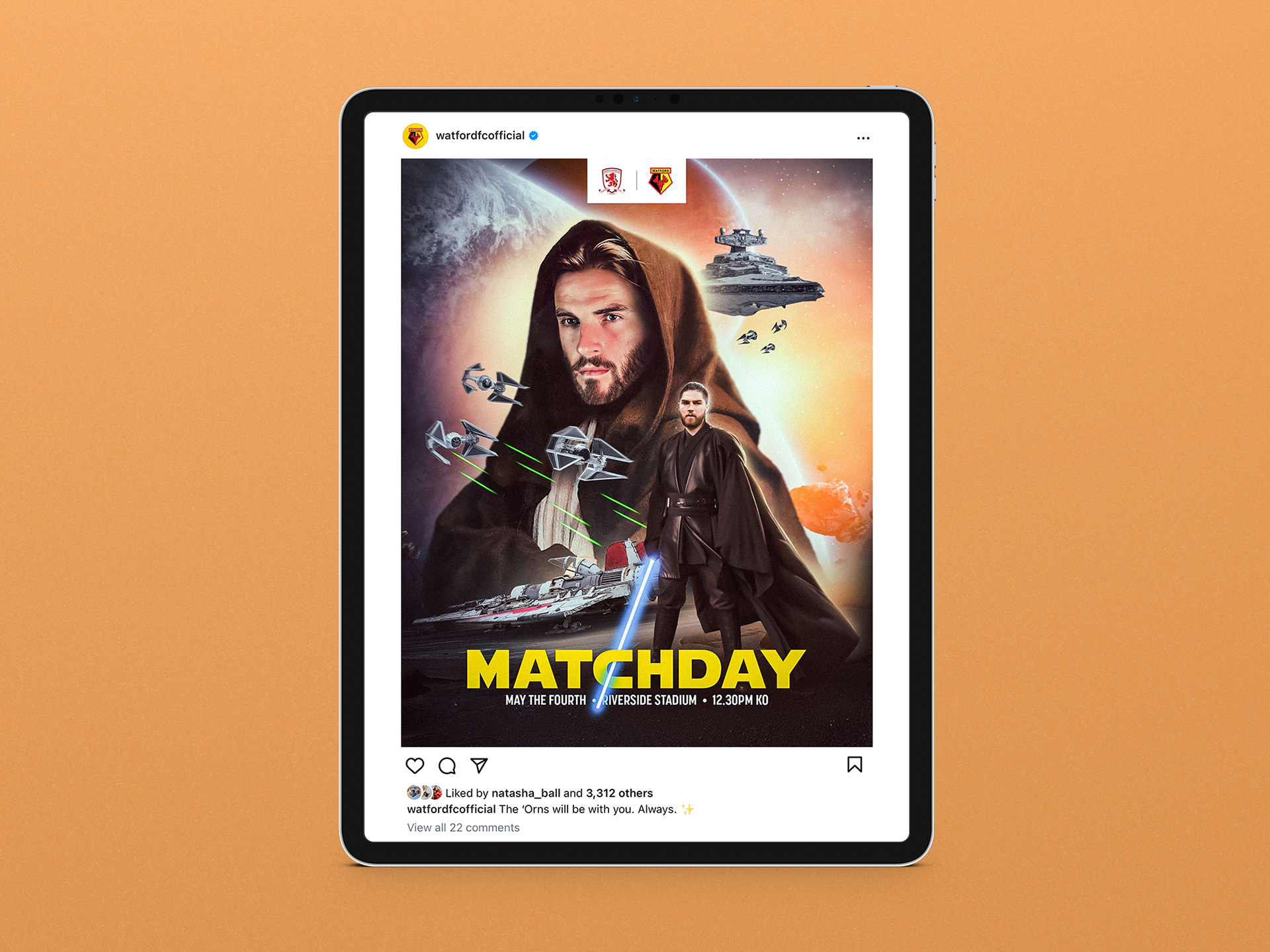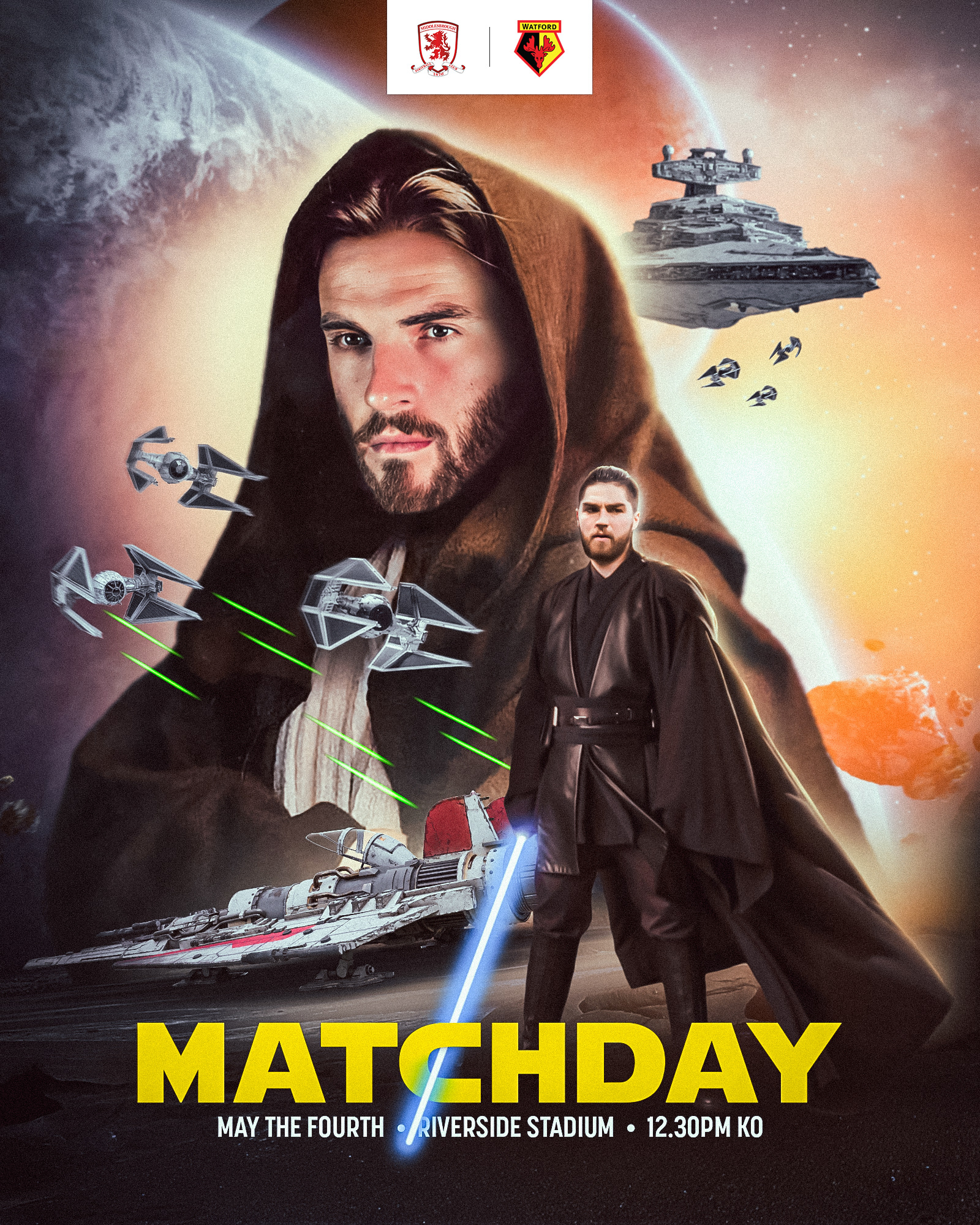 Star Wars themed matchday graphic for Middlesbrough v Watford on Star Wars Day.