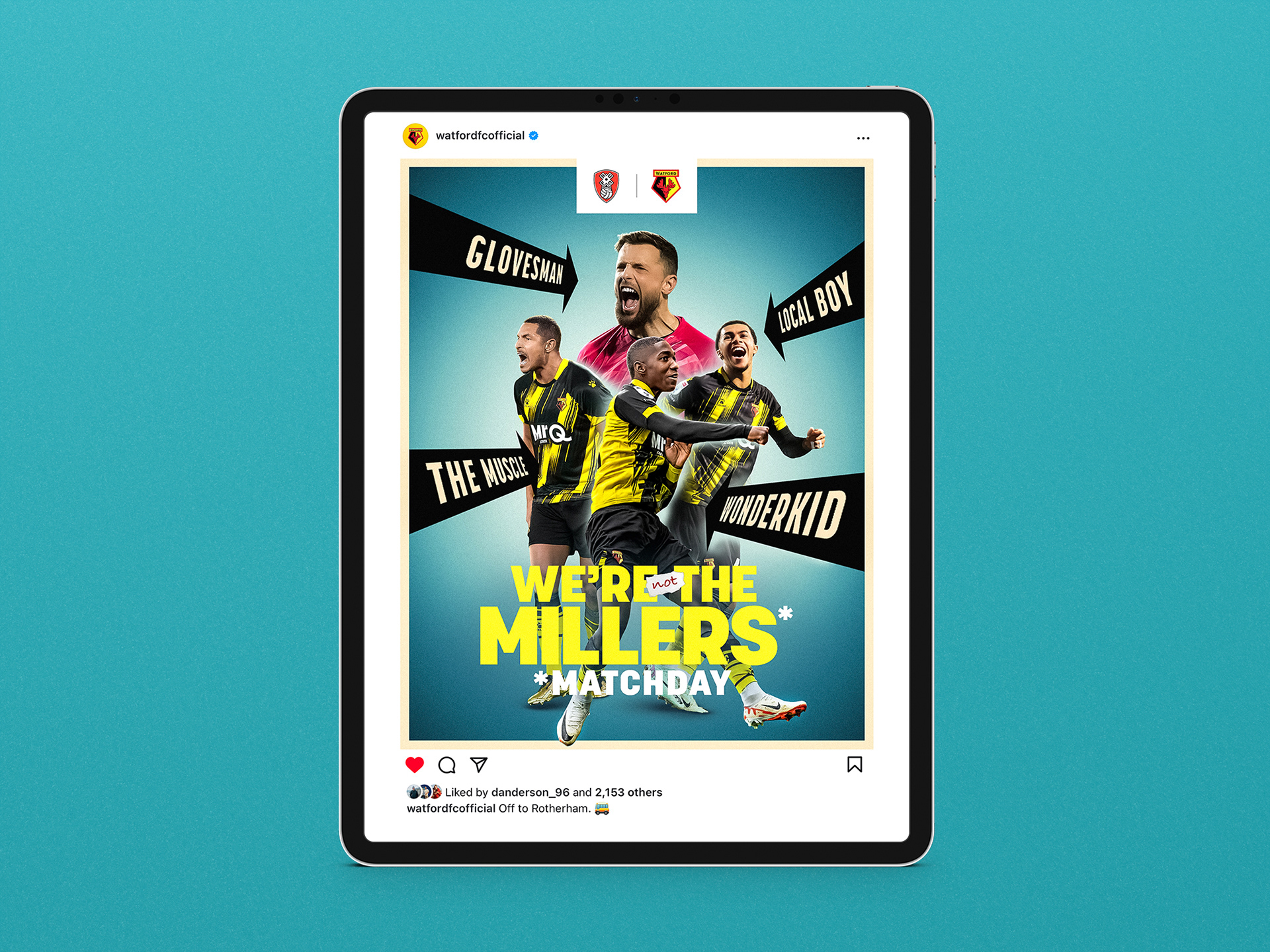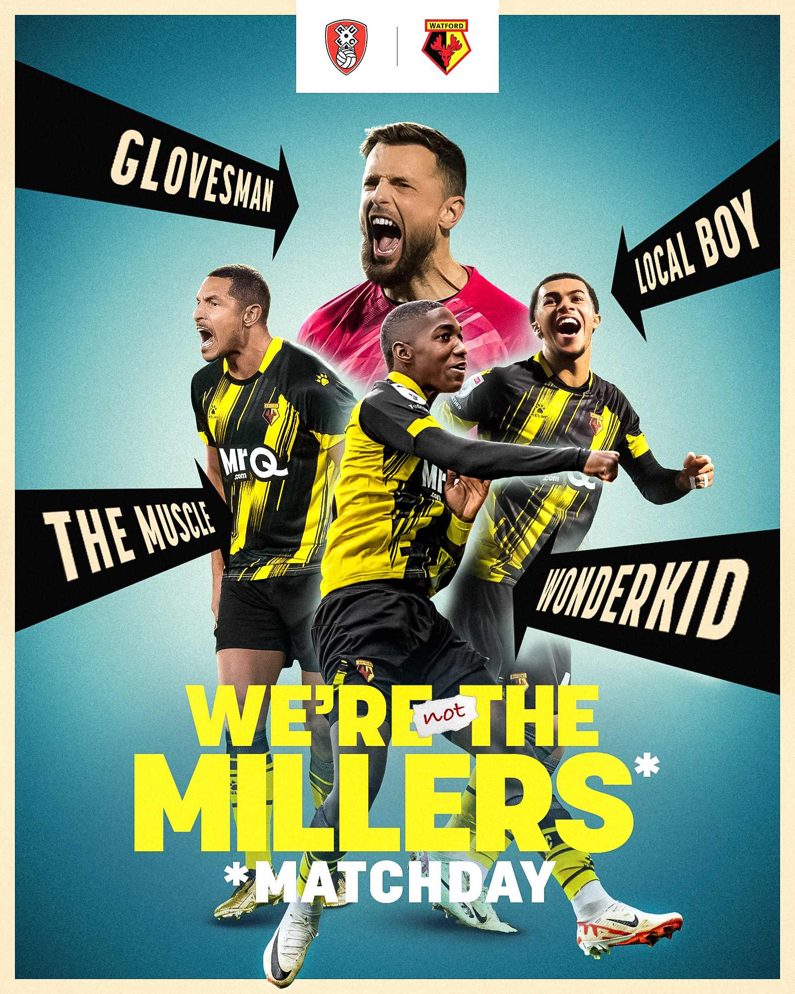 We're the Millers movie poster themed matchday graphic for Rotherham United (The MIllers) v Watford.