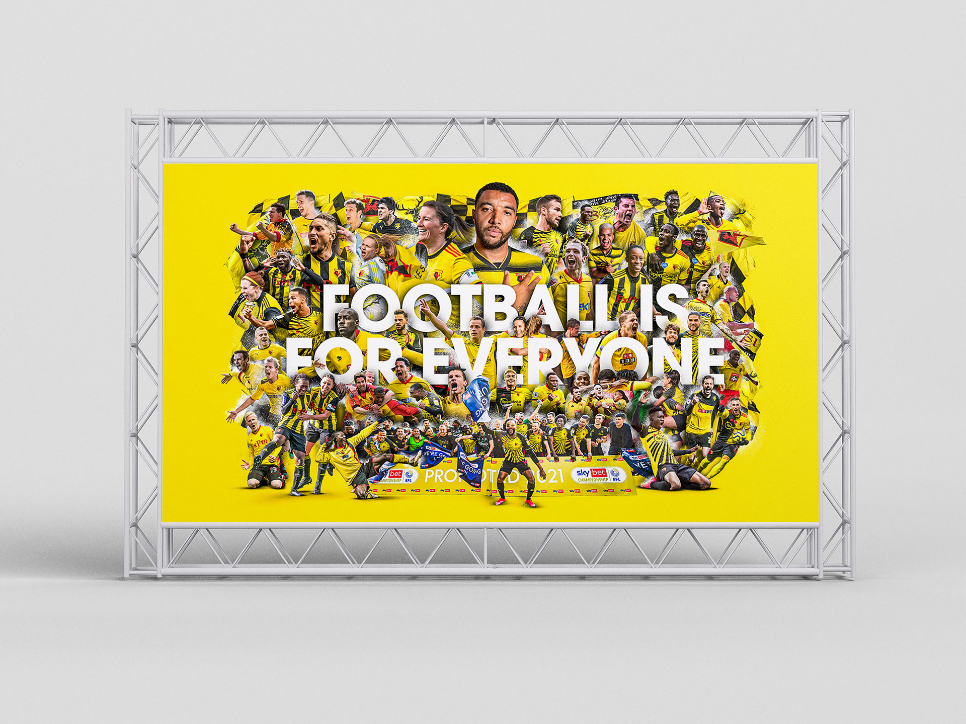 A piece for Watford's equality and diversity campaign going into the 2021/22 season which included 4.5m x 3m billboard on Vicarage Road.